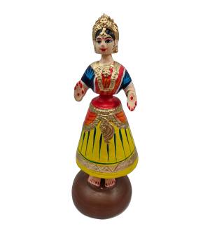 This Etikoppaka wooden doll depicts a village lady engaged in selling goods, capturing the essence of rural life with charm and simplicity. Handcrafte..