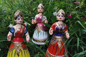 Kondapalli dolls are colorful wooden figures made from soft, lightweight wood and painted with bright natural colors. They often depict scenes from ev..