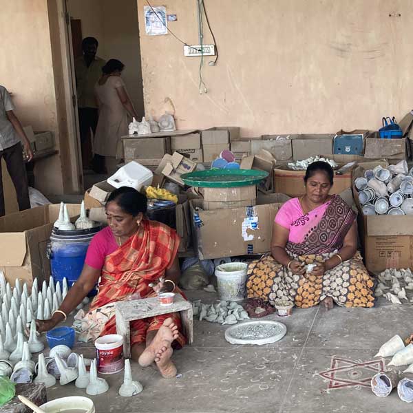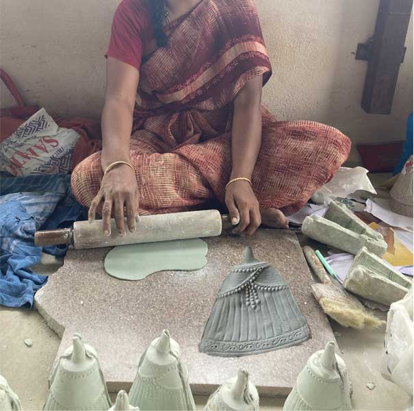 A mixture of flours and clay is prepared initially. The dough is placed inside the mould and pressed till it takes the shape of mould.