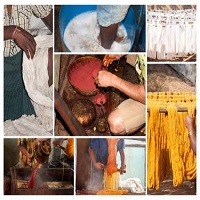 Dyeing: Cotton yarns are thoroughly washed to remove dust or any foreign particles and then hung in the open sky to dry naturally. It is then soaked in the hot dye mixture for considerable amount of time and colored yarn is dried.